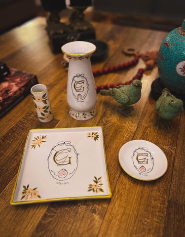 Transforme cada refeição em uma celebração da arte. Nossos jogos de pratos personalizados são pintados à mão com delicadeza e requinte, tornando-se verdadeiras obras de porcelana que refletem a identidade e o estilo de cada família. Mais do que utilitários, são peças que atravessam gerações, carregando memórias e histórias à mesa.