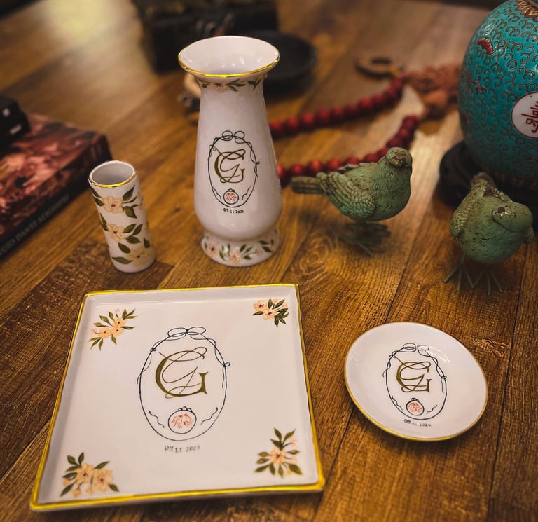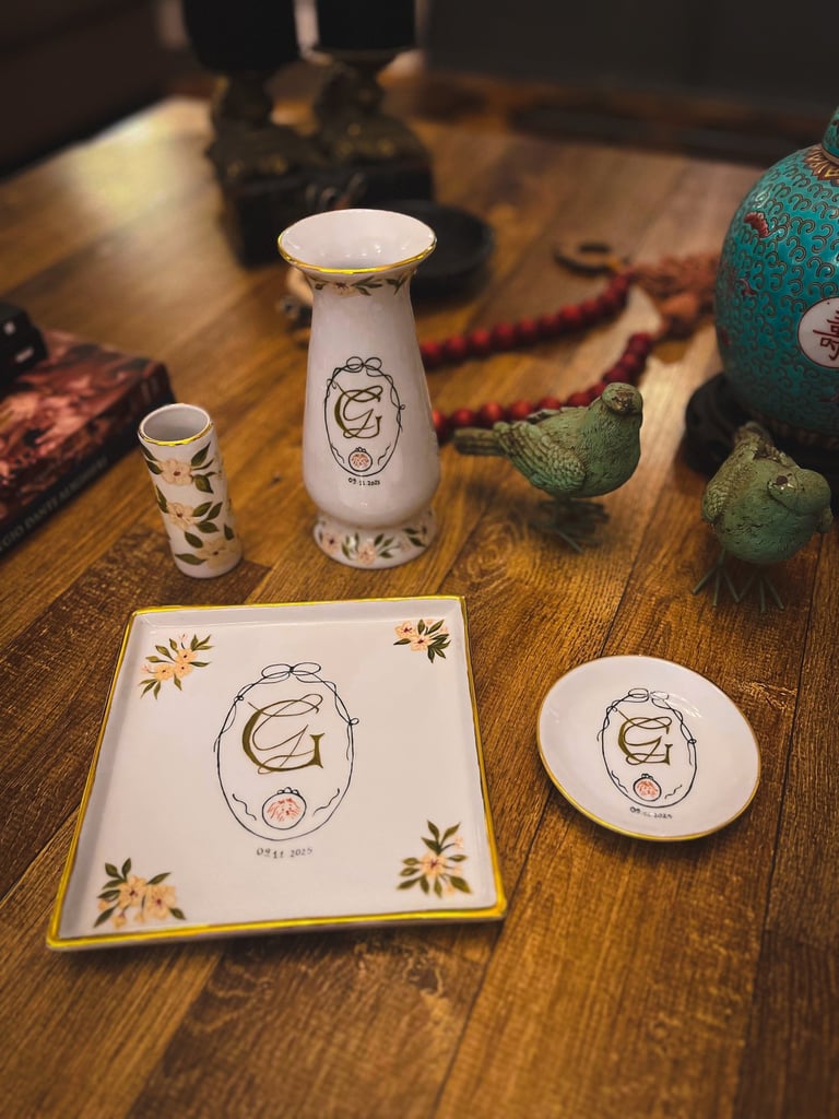 Celebre o amor com presentes que se tornam heranças. Nossas porcelanas pintadas à mão são símbolos de união e eternidade, perfeitas para marcar o início de uma nova vida a dois. Cada peça é única, carregando a delicadeza da arte e a exclusividade que um momento tão especial merece. Um presente que transcende o tempo e guarda memórias.